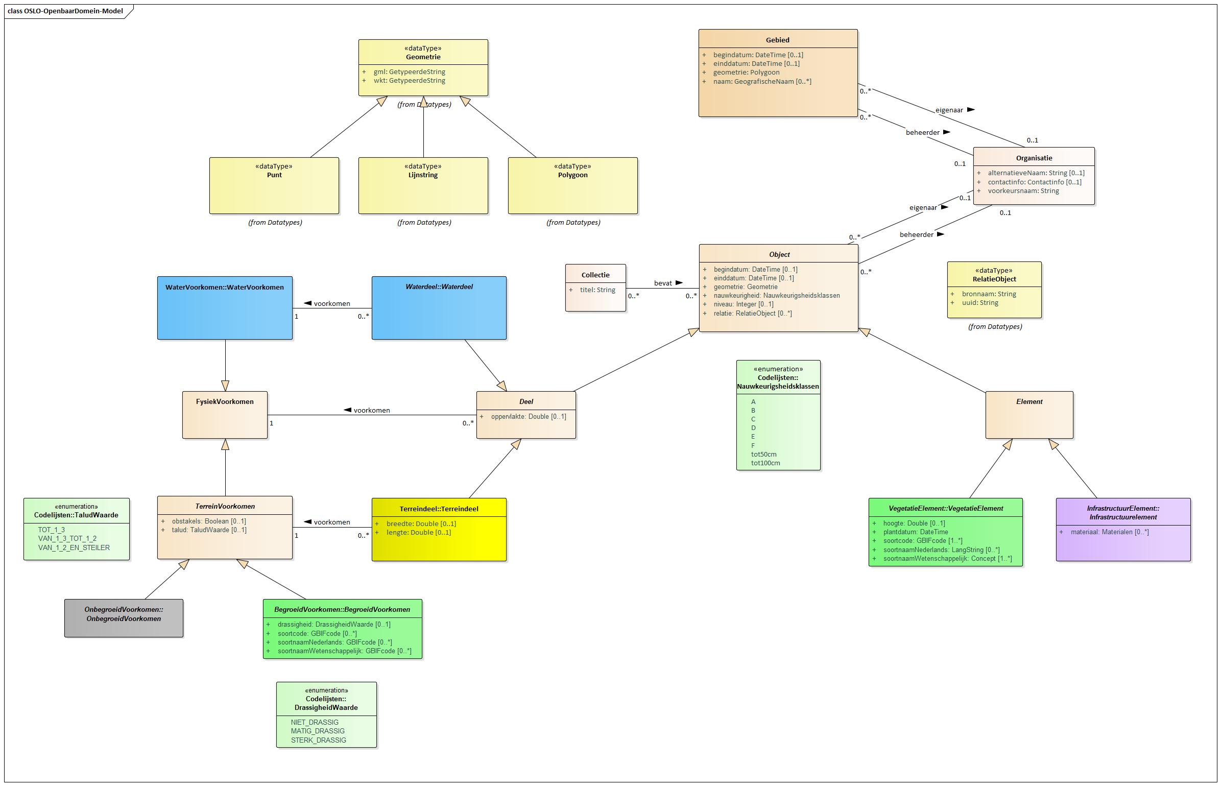 - Voor deze entiteit zijn de volgende eigenschappen gedefinieerd: begindatum, beheerder, eigenaar, einddatum, geometrie, nauwkeurigheid, niveau, relatie.
